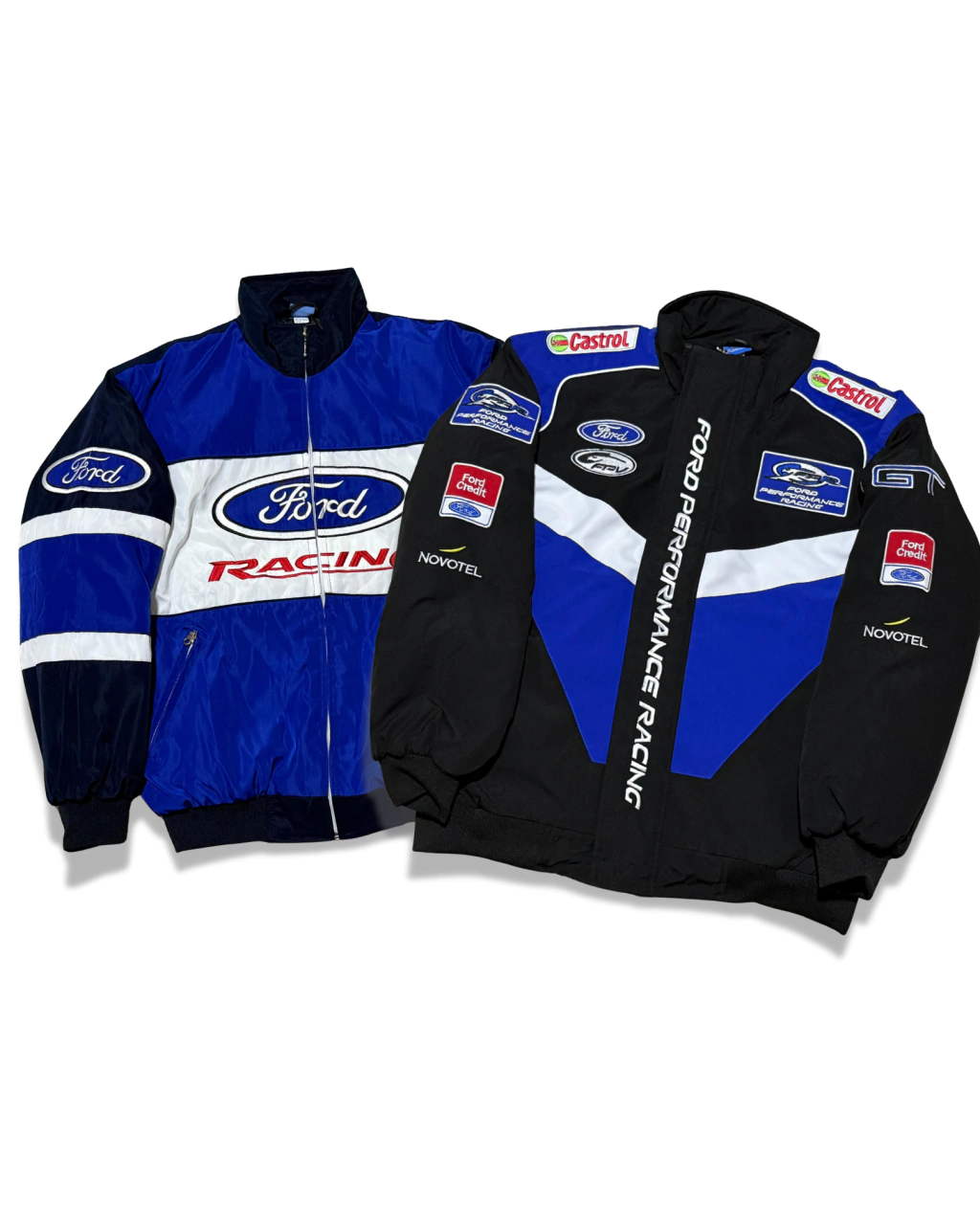 El bundle Blue Legacy combina dos versiones icónicas del equipo Ford Racing, con bordados detallados, colores vibrantes y espíritu de competencia.